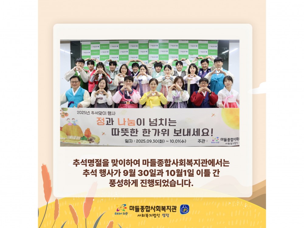 2025년 추석 맞이 명절 행사 페이지 정보 작성자 서비스1팀 작성일25-10-22 19:11 조회25회 댓글0건 관련링크 이전글 다음글 목록 본문 #단풍 #추석#명절* 이 디자인은 미리캔버스에서 작업되었습니다.(https://www.miricanvas.com) 댓글목록 등록된 댓글이 없습니다. 이전글 다음글 목록