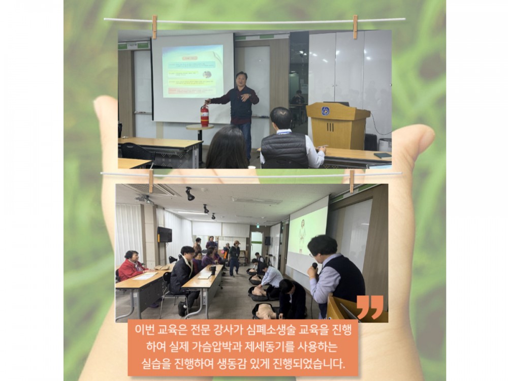 직원필수교육 (심폐소생술 및 비상대피훈련/화재예방 안전교육) 페이지 정보 작성자 시설운영팀 작성일25-10-31 13:43 조회13회 댓글0건 관련링크 이전글 다음글 목록 본문 #단풍 #추석#명절* 이 디자인은 미리캔버스에서 작업되었습니다.(https://www.miricanvas.com) 댓글목록 등록된 댓글이 없습니다. 이전글 다음글 목록
