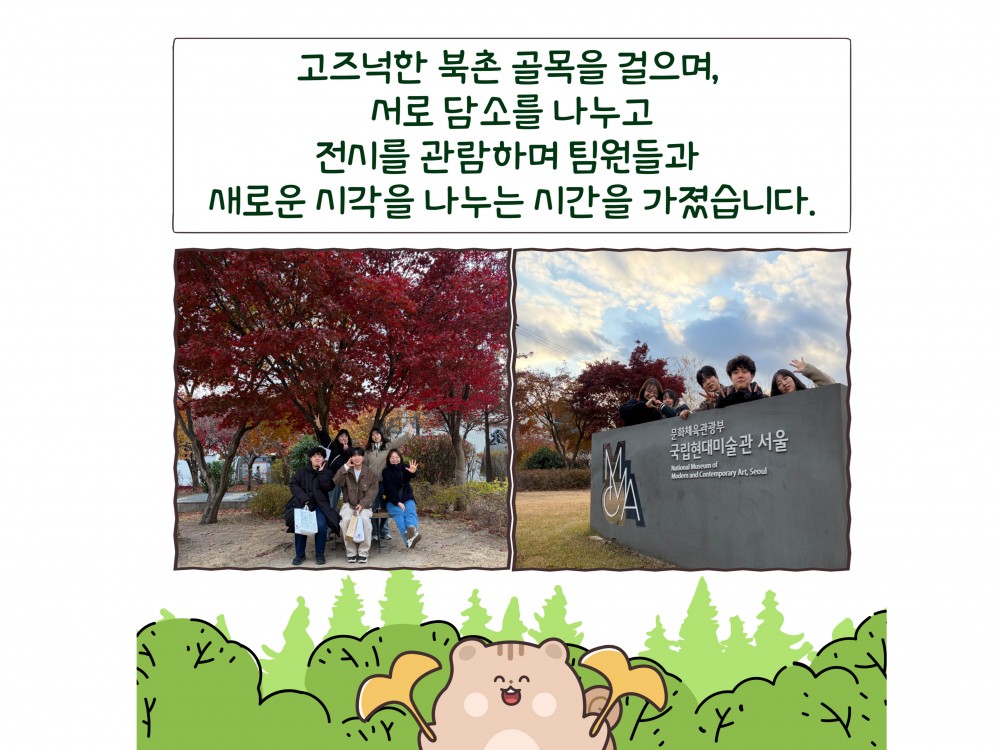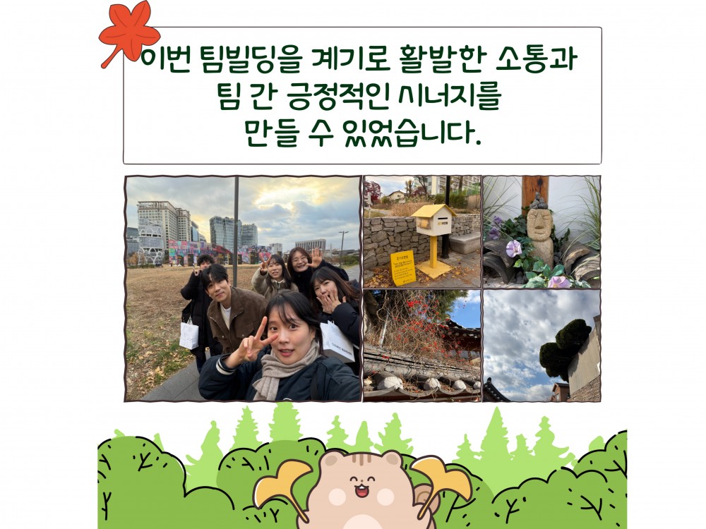 2025 지역밀착과 팀빌딩 페이지 정보 작성자 경영지원팀 작성일25-11-26 22:48 조회151회 댓글0건 관련링크 이전글 다음글 목록 본문 * 이 디자인은 미리캔버스에서 작업되었습니다.(https://www.miricanvas.com)* 글꼴 출처 : https://bit.ly/4aRZ60P#크리스마스 #붕세권 #연말 댓글목록 등록된 댓글이 없습니다. 이전글 다음글 목록