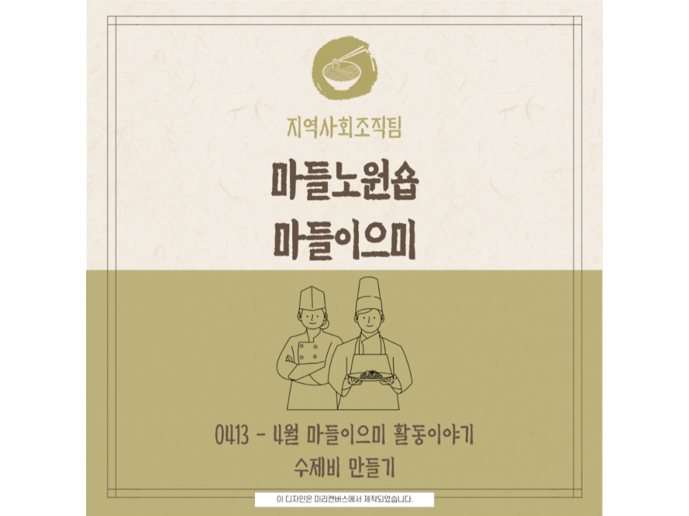 4월 마들이으미 활동 페이지 정보 작성자 지역사회조직팀 작성일26-04-23 11:44 조회10회 댓글0건 관련링크 이전글 다음글 목록 본문 #벚꽃 명소 #미세먼지 #한강* 이 디자인은 미리캔버스에서 작업되었습니다.(https://www.miricanvas.com) 댓글목록 등록된 댓글이 없습니다. 이전글 다음글 목록