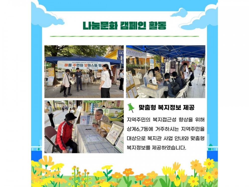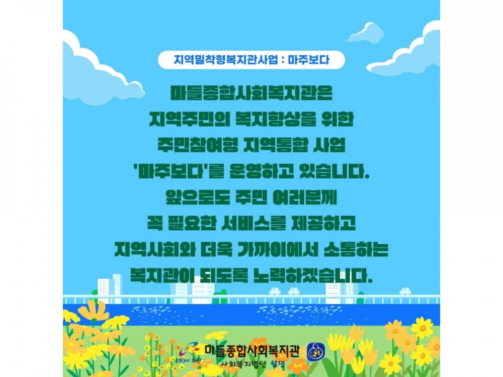 지역밀착형사회복지관사업:마주보다_캠페인&찾아가는 복지상담소 페이지 정보 작성자 서비스팀 작성일26-04-24 15:20 조회7회 댓글0건 관련링크 이전글 다음글 목록 본문 #벚꽃 명소 #미세먼지 #한강* 이 디자인은 미리캔버스에서 작업되었습니다.(https://www.miricanvas.com) 댓글목록 등록된 댓글이 없습니다. 이전글 다음글 목록