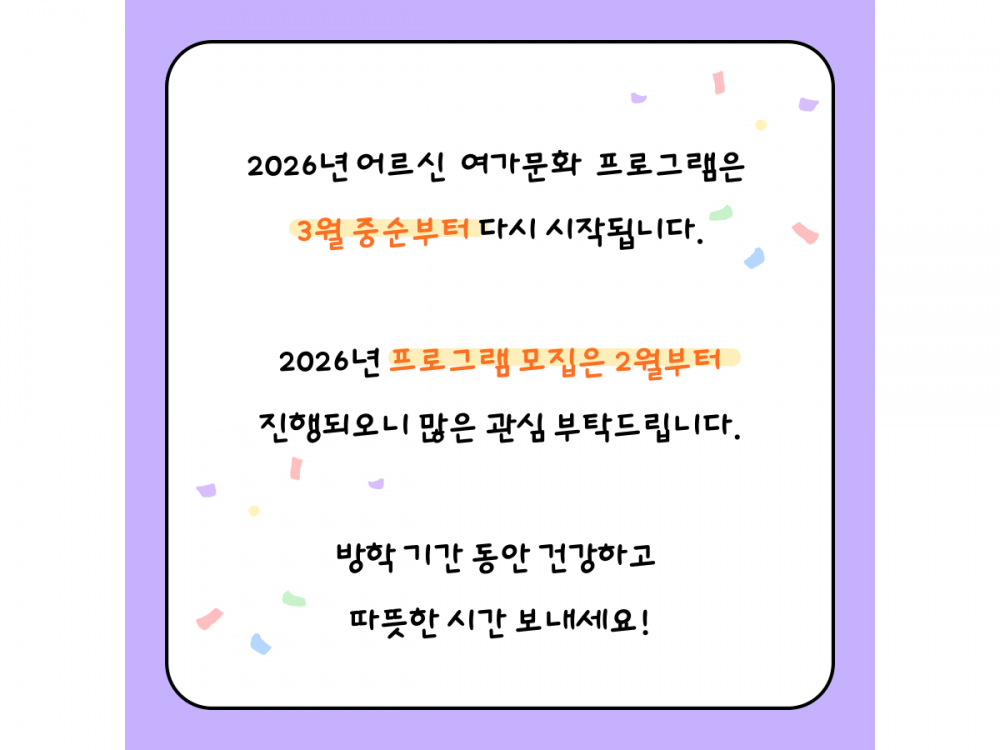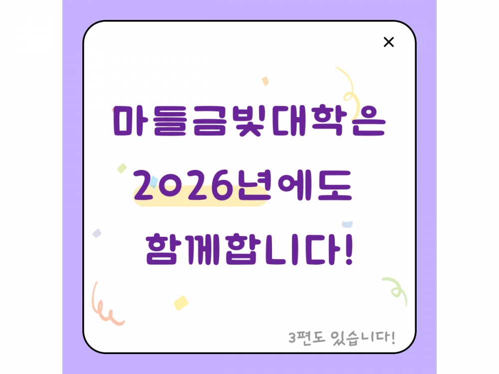 마들금빛대학 문화여가프로그램 하이라이트 페이지 정보 작성자 서비스팀 작성일25-12-23 15:36 조회75회 댓글0건 관련링크 이전글 다음글 목록 본문 #크리스마스 #붕세권 #연말* 이 디자인은 미리캔버스에서 작업되었습니다.(https://www.miricanvas.com) 댓글목록 등록된 댓글이 없습니다. 이전글 다음글 목록