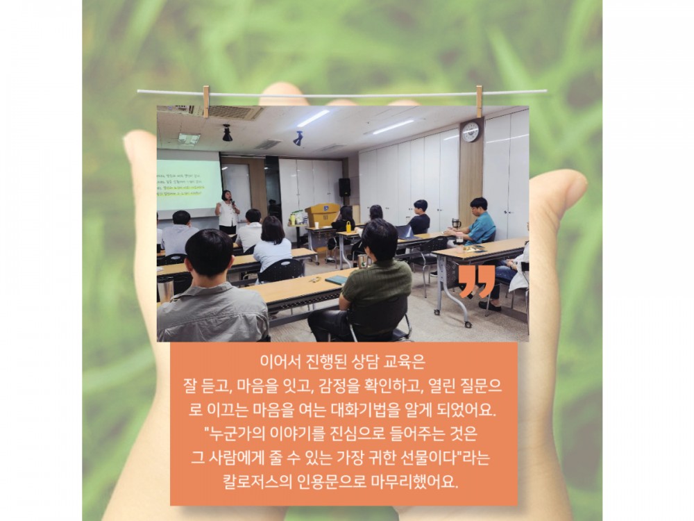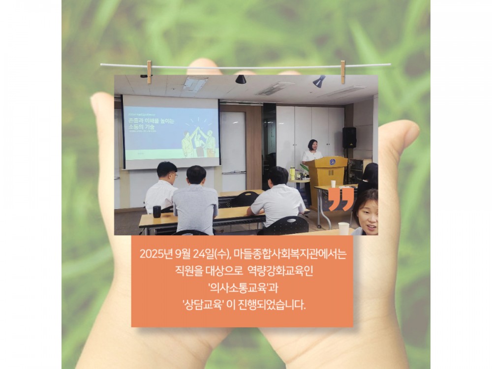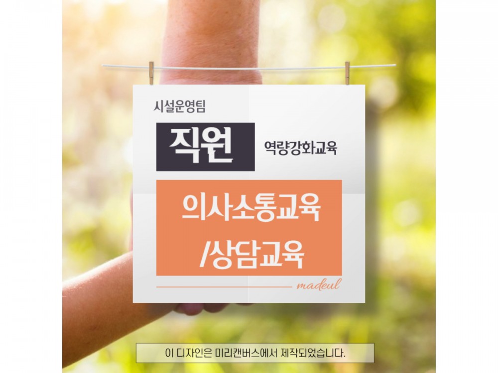 역량강화교육 (의사소통교육 / 상담교육) 페이지 정보 작성자 시설운영팀 작성일25-09-24 20:51 조회68회 댓글0건 관련링크 이전글 다음글 목록 본문 #단풍 #추석 #명절* 이 디자인은 미리캔버스에서 작업되었습니다.(https://www.miricanvas.com) 댓글목록 등록된 댓글이 없습니다. 이전글 다음글 목록
