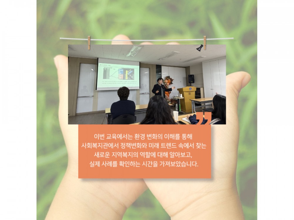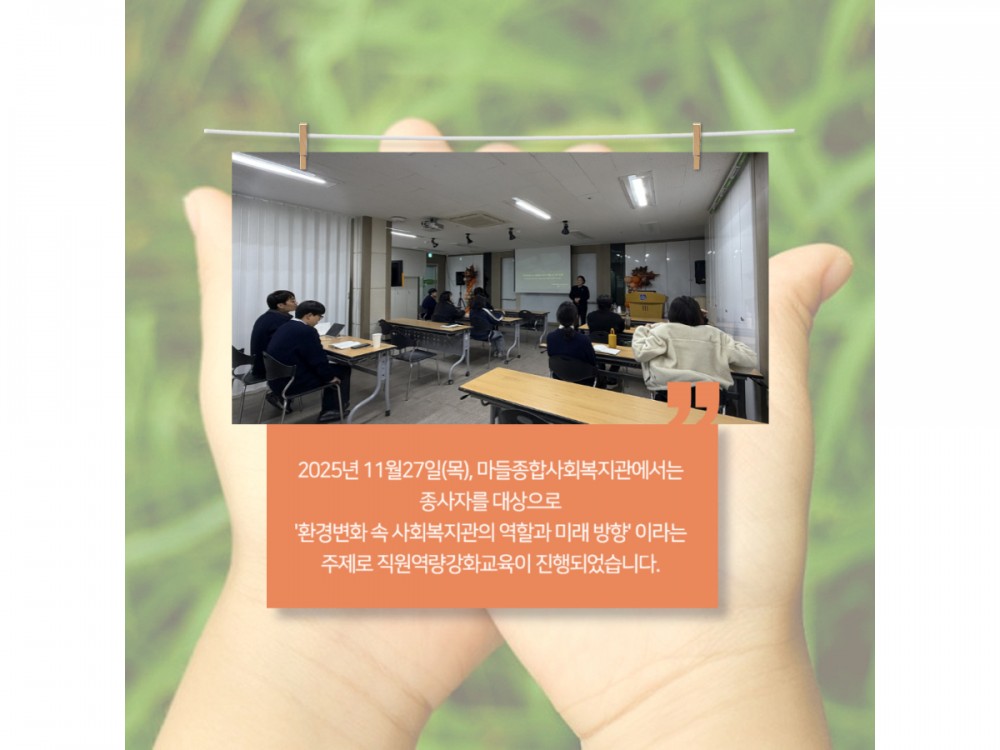 직원역량강화교육 (사회복지 동향 및 법체계 교육) 페이지 정보 작성자 시설운영팀 작성일25-11-27 19:57 조회100회 댓글0건 관련링크 이전글 다음글 목록 본문 * 이 디자인은 미리캔버스에서 작업되었습니다.(https://www.miricanvas.com)* 글꼴 출처 : https://bit.ly/4aRZ60P 댓글목록 등록된 댓글이 없습니다. 이전글 다음글 목록