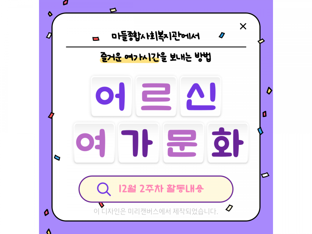 마들금빛대학 12월 2주차 활동내용 페이지 정보 작성자 서비스팀 작성일25-12-12 22:53 조회87회 댓글0건 관련링크 이전글 다음글 목록 본문 #크리스마스 #붕세권 #연말* 이 디자인은 미리캔버스에서 작업되었습니다.(https://www.miricanvas.com) 댓글목록 등록된 댓글이 없습니다. 이전글 다음글 목록